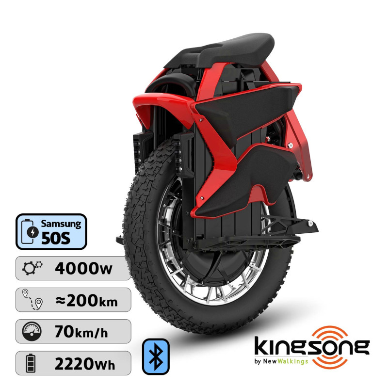 Bien que la KS-S19 ressemble beaucoup à la Kingsong S18, les performances proposées sont considérablement améliorées. Le moteur brushless nouvelle génération développe une puissance de 3500 W tandis que la batterie de 17,7 Ah et 100 V offre une capacité totale de 1776 Wh. Ce duo permet à la KS-S19 d’atteindre une vitesse de pointe de 60 km/h et d’offrir une autonomie annoncée de 150 km. Comptez environ 5 h de charge en mode simple et 2 heures 30 en mode dual charge (2 ports externe USB-A et USB-C.)